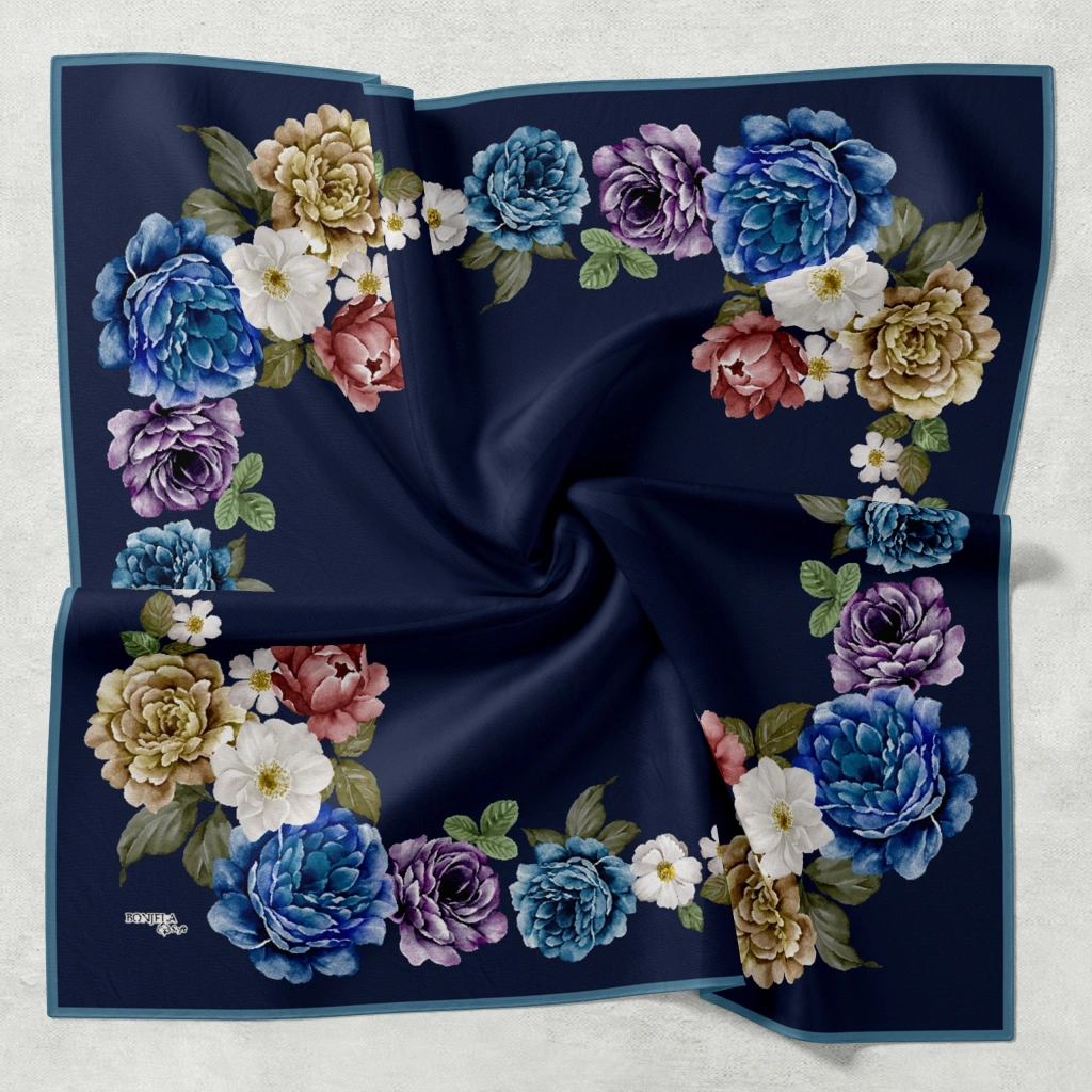Bonjela Soft Eşarp D1 Çiçekli Lacivert Mavi