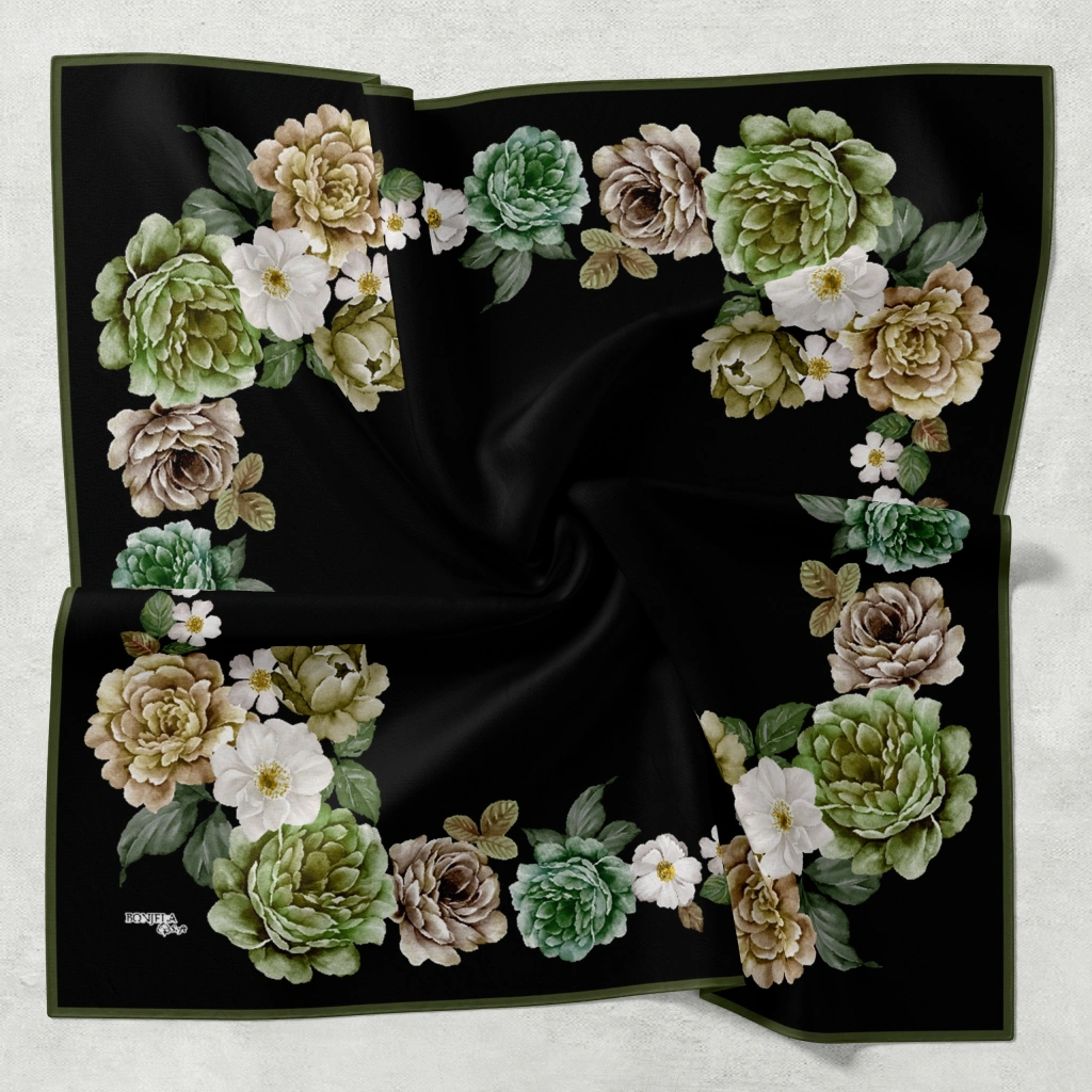 Bonjela Soft Eşarp D1 Çiçekli Siyah Haki