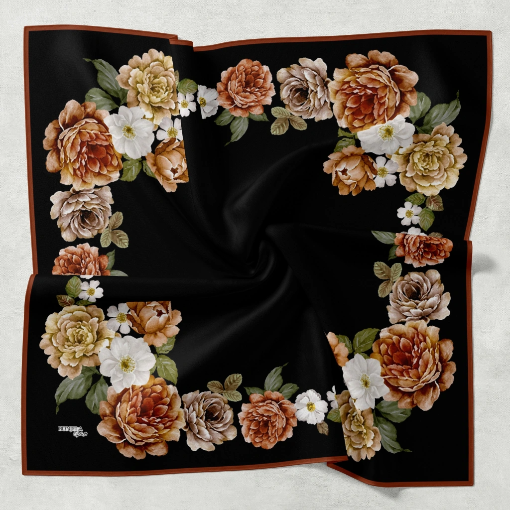 Bonjela Soft Eşarp D1 Çiçekli Siyah Taba