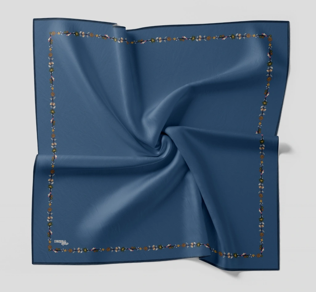 Bonjela Soft Eşarp Minimal Çiçek Desen İndigo Mavi