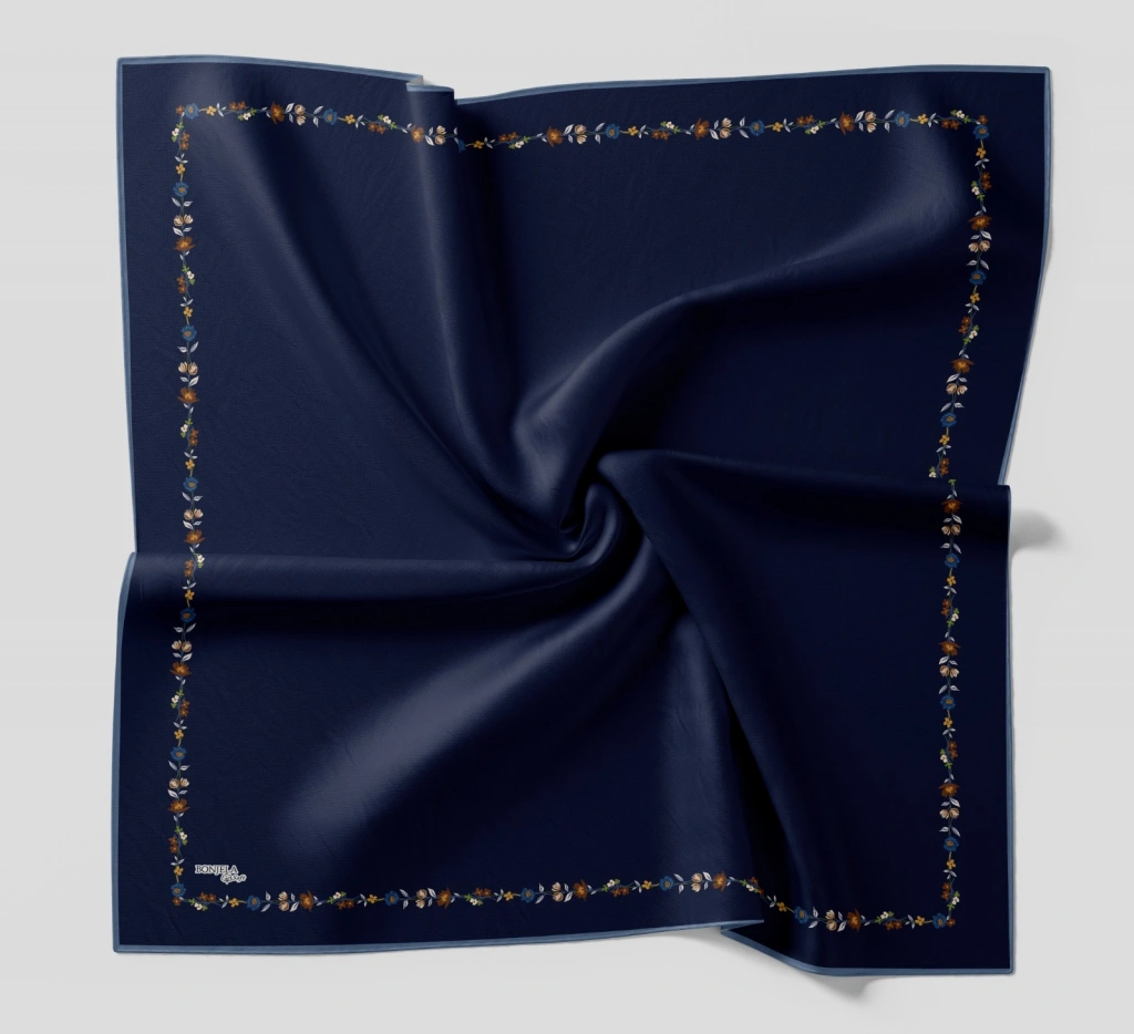 Ebatları 90x90 cm olan bu eşarp, her mevsim ve her kıyafetle rahatlıkla kombinlenebilir. Minimal çiçek deseniyle şıklığı ön plana çıkaran Lacivert Mavi renk seçeneği, her tarza uyum sağlar.