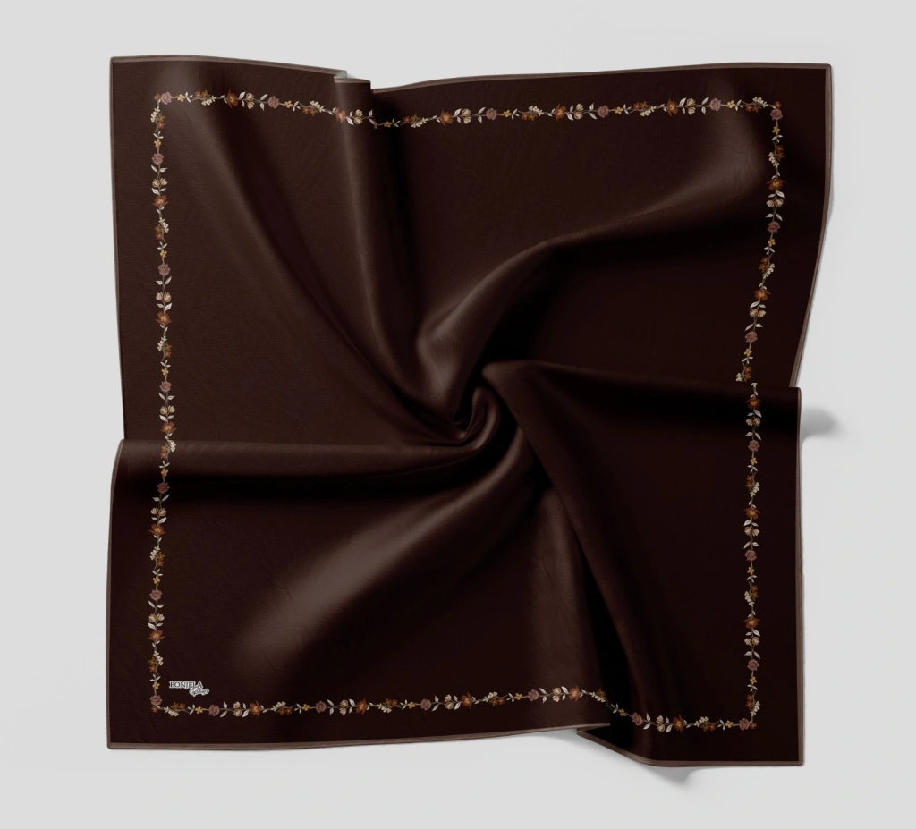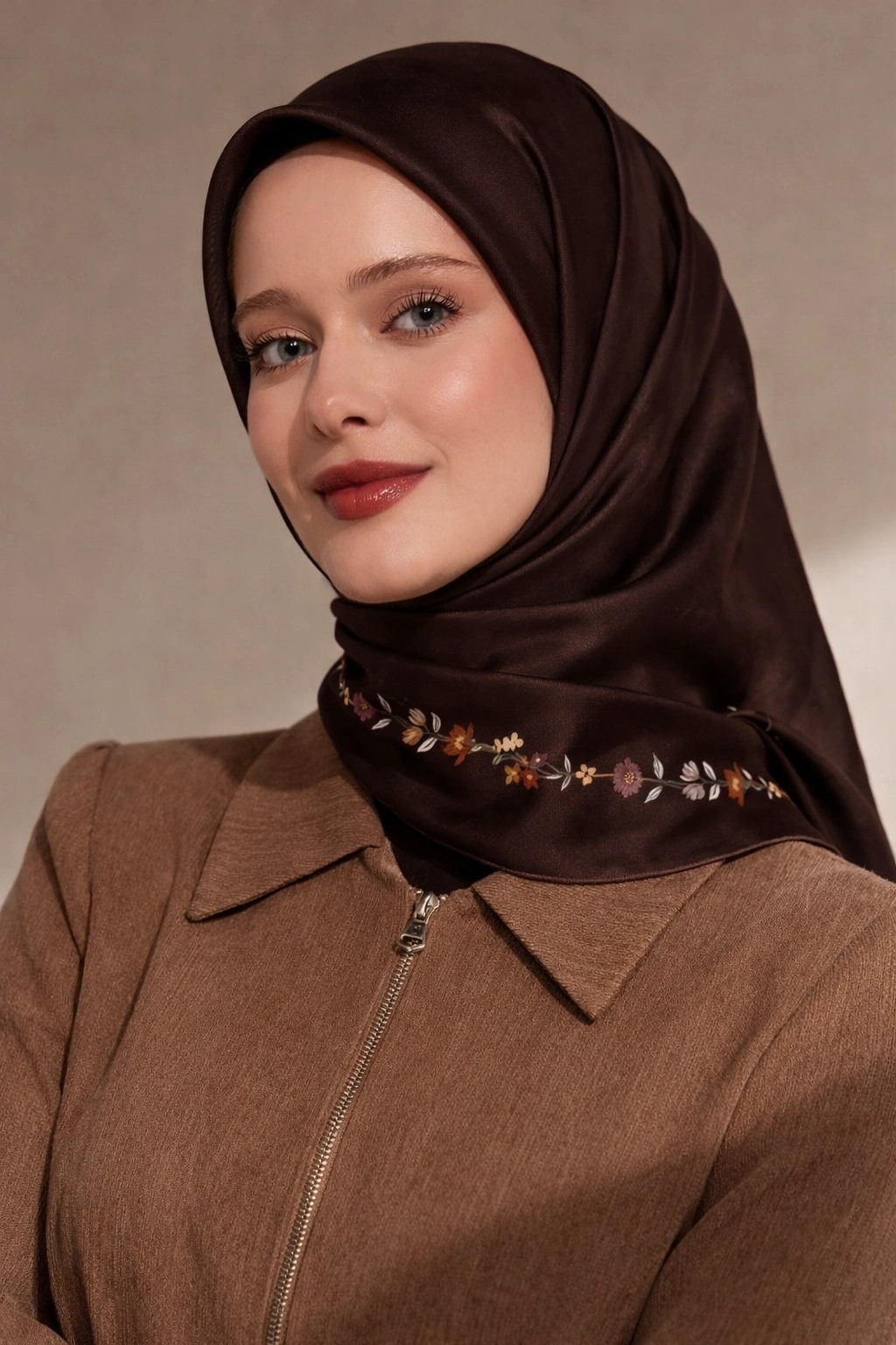 Bonjela Soft Eşarp Minimal Çiçek Desen Acı Kahve