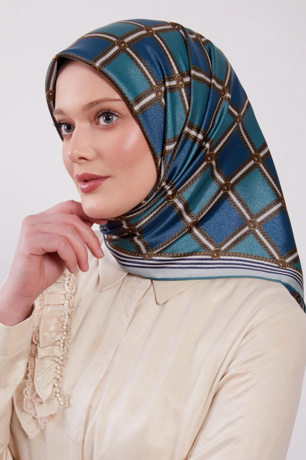 Levidor Kristal Eşarp Baklava Desen Petrol Mavi