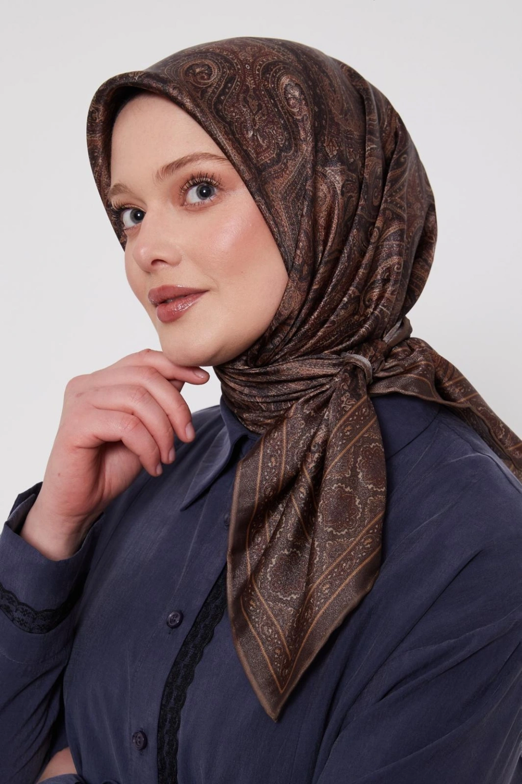 Levidor Kristal Eşarp Etnik Desen Kahve