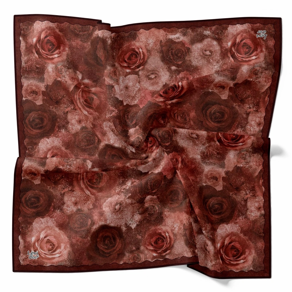 Gül desenli bordo renkteki eşarp, zarif tasarımıyla dikkat çeker.