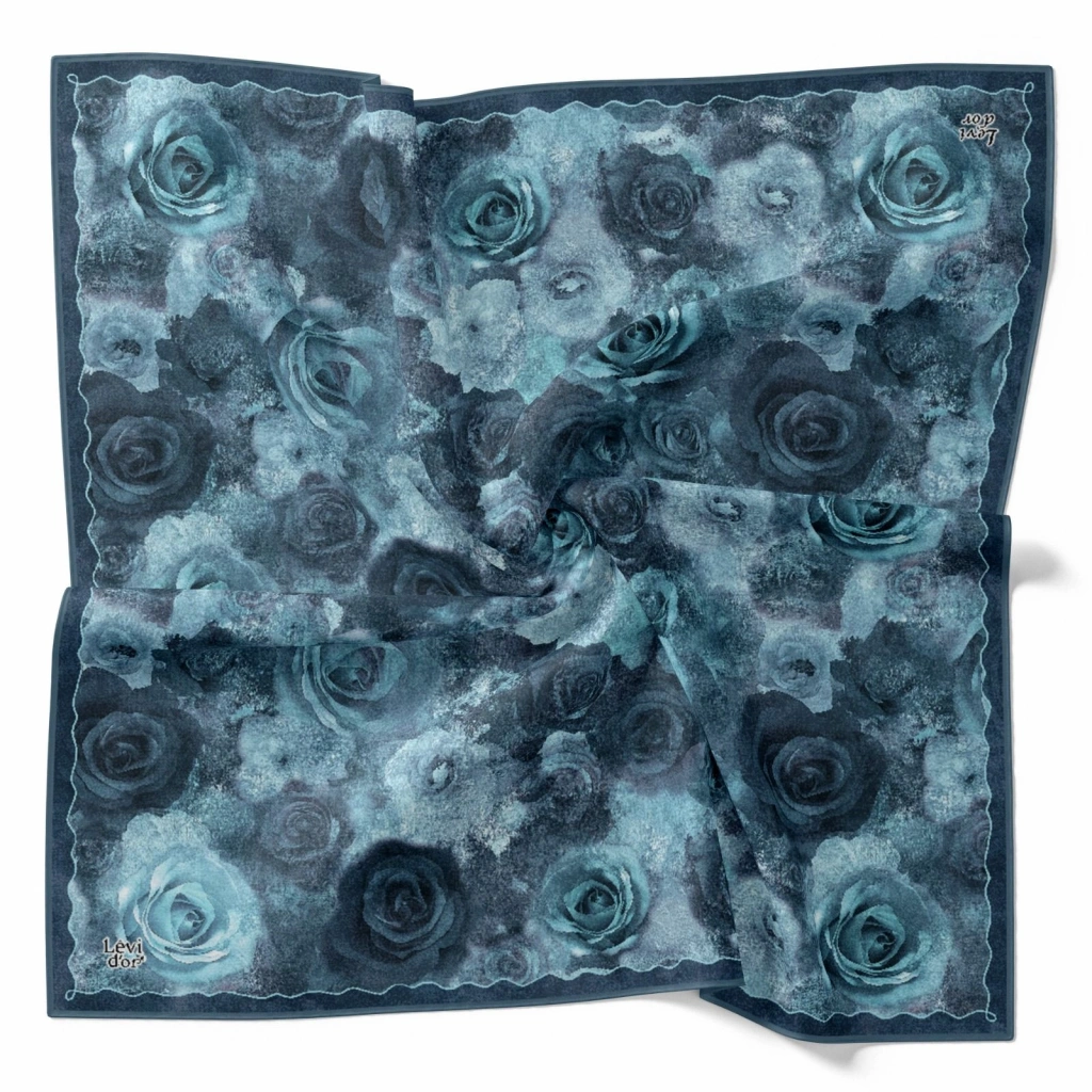 Ebatları 90 x 90 cm olan bu eşarp, gül desenleriyle dikkat çeker ve kullanıcısına şıklık katar. Petrol mavi rengiyle de her mevsimde rahatlıkla kullanılabilir.