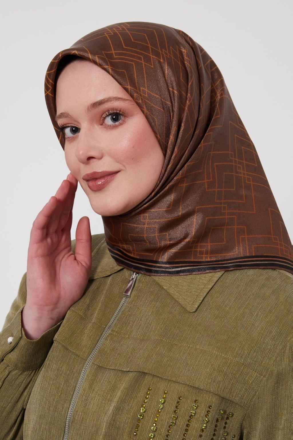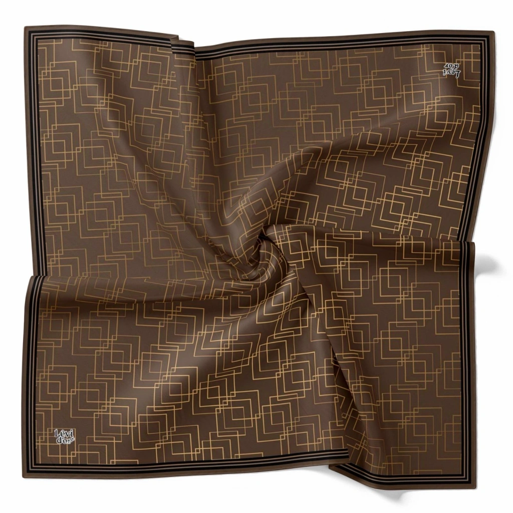 Levidor Kristal Eşarp Kare Desen Çikolata, şıklığı ve zarafeti bir arada sunan bir eşarptır.