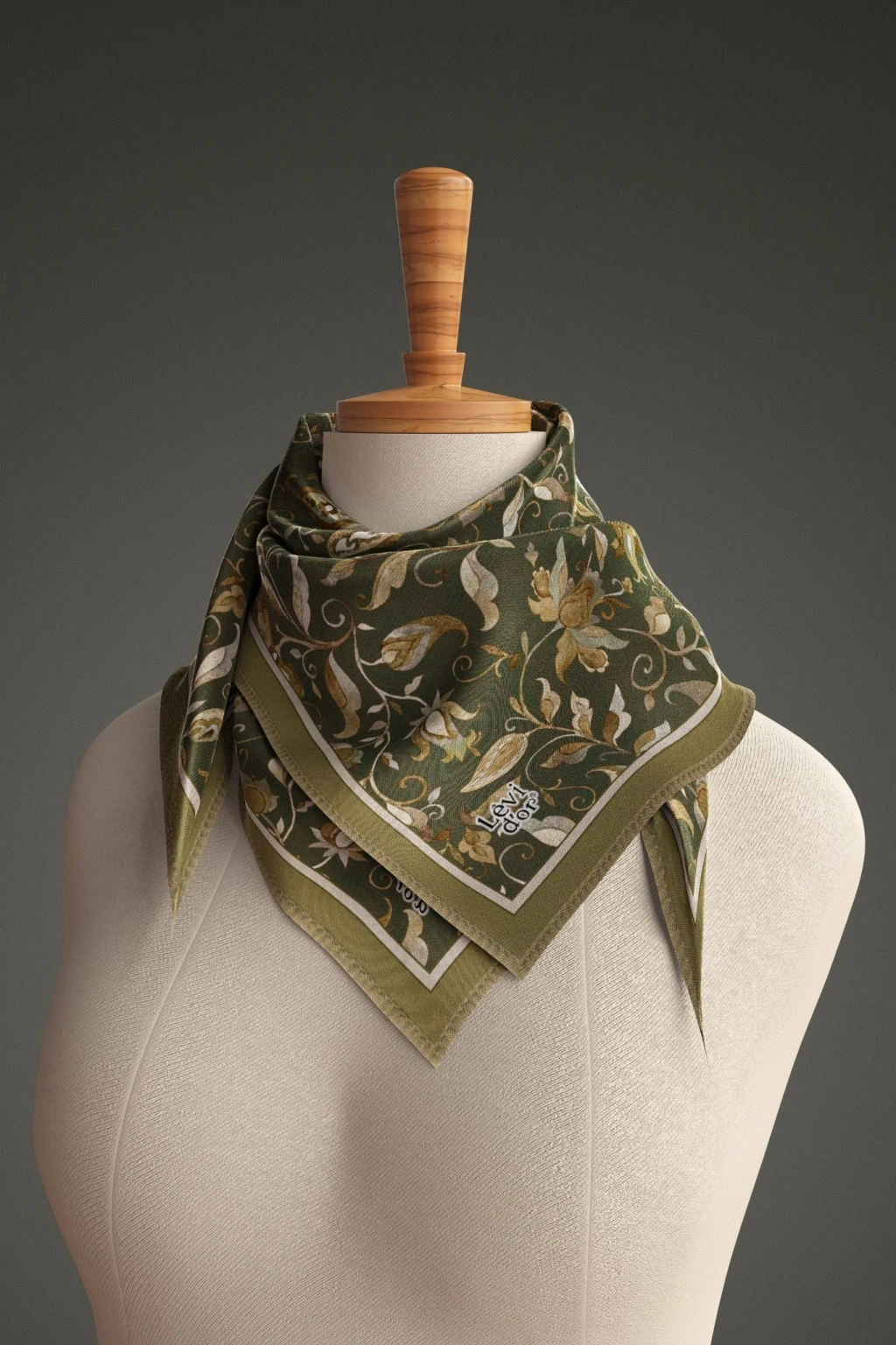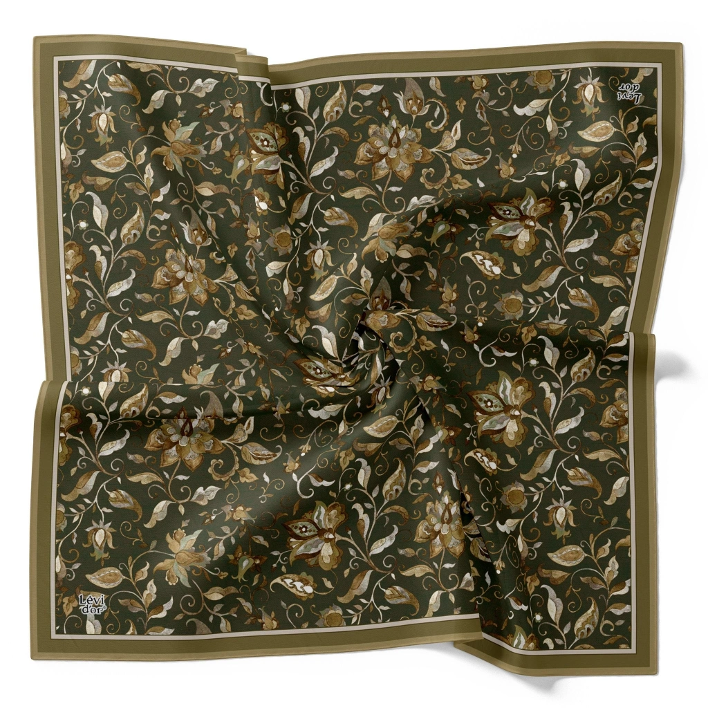Levidor Kristal Eşarp Lalezar Desen Haki