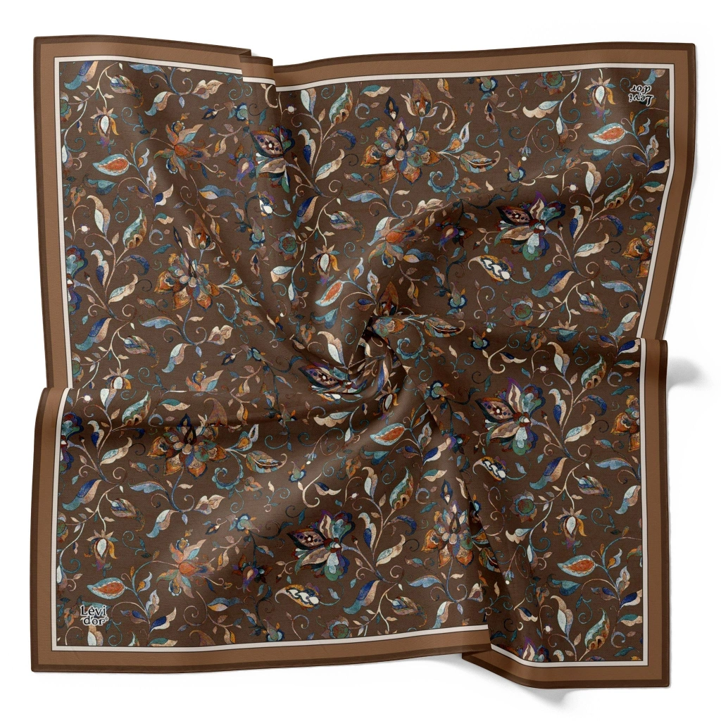Levidor Kristal Eşarp Lalezar Desen Kahve, şıklığı ve zarifliği bir arada sunan bir eşarptır.