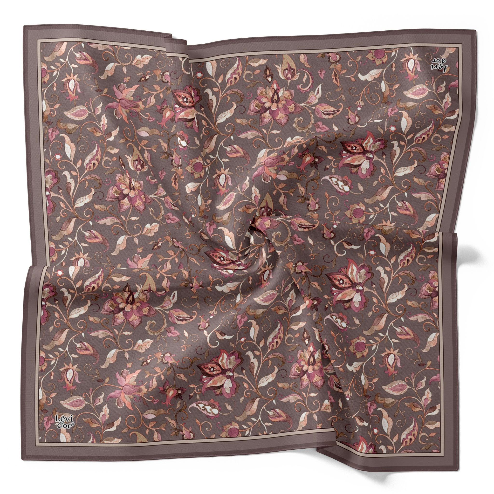 Levidor Kristal Eşarp Lalezar Desen Koyu Vizon