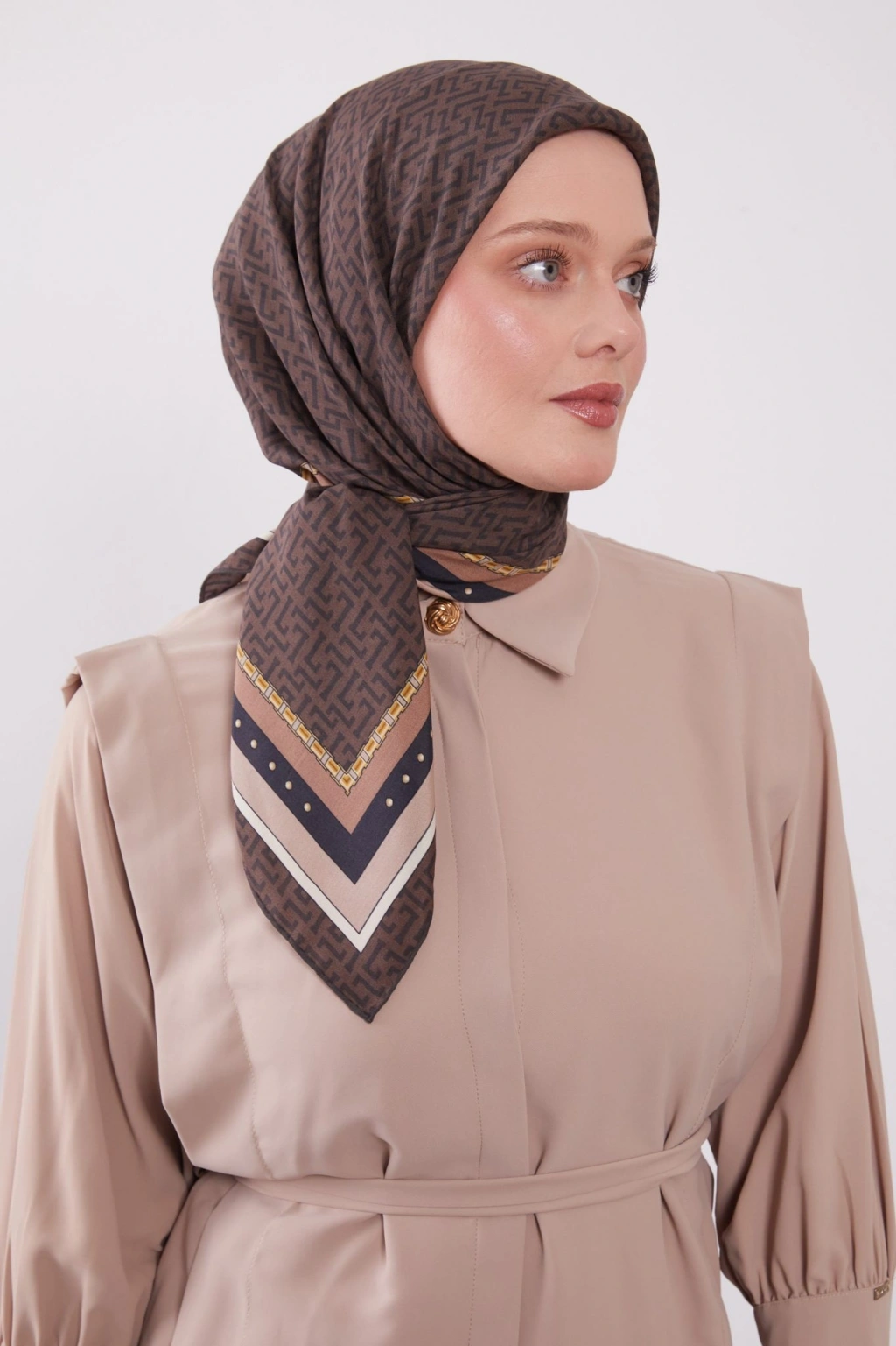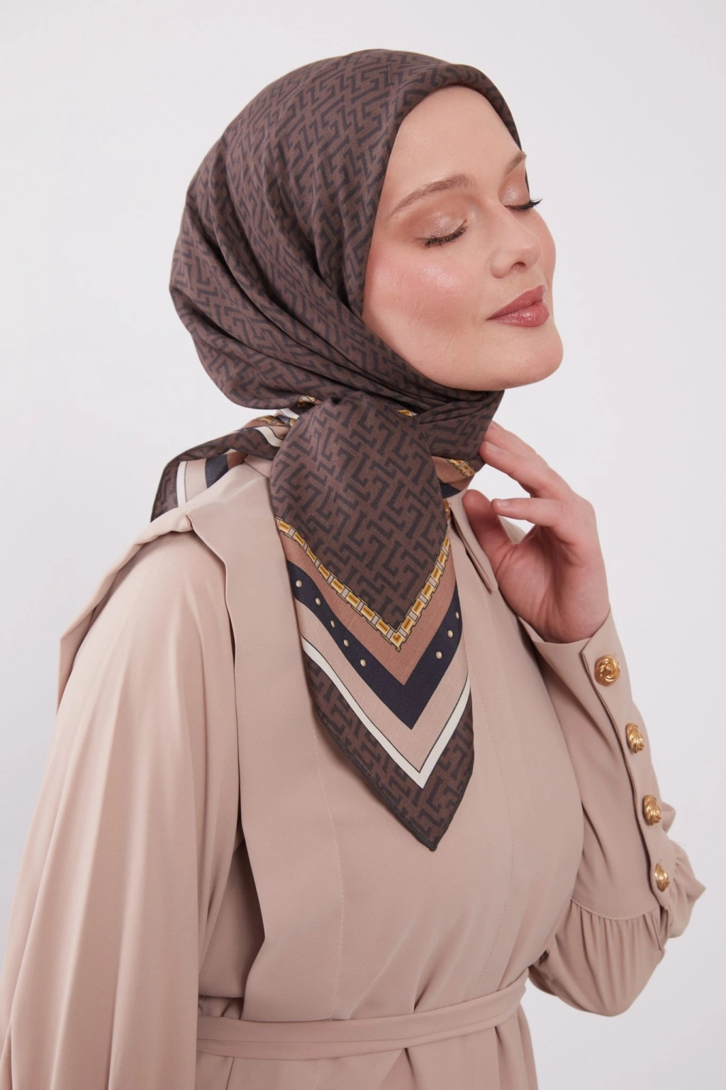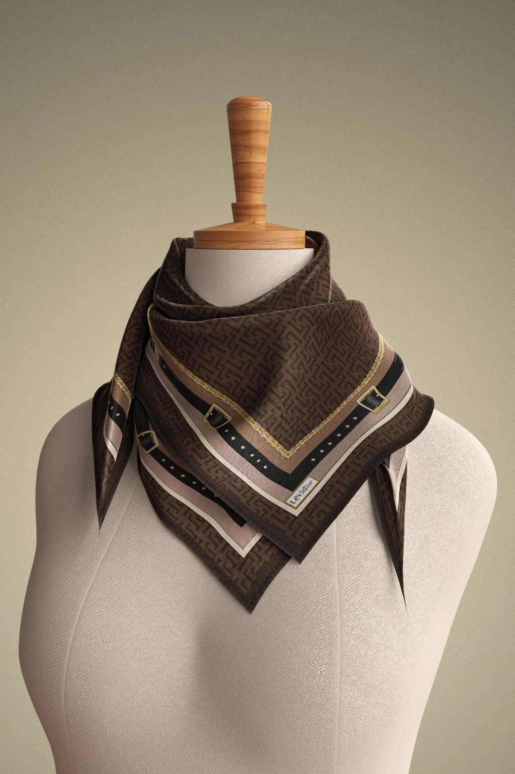 Levidor Royal Eşarp Kemer Desen Acı Kahve, şıklık ve zarafeti bir arada sunan Levidor'un özel tasarımıdır.
