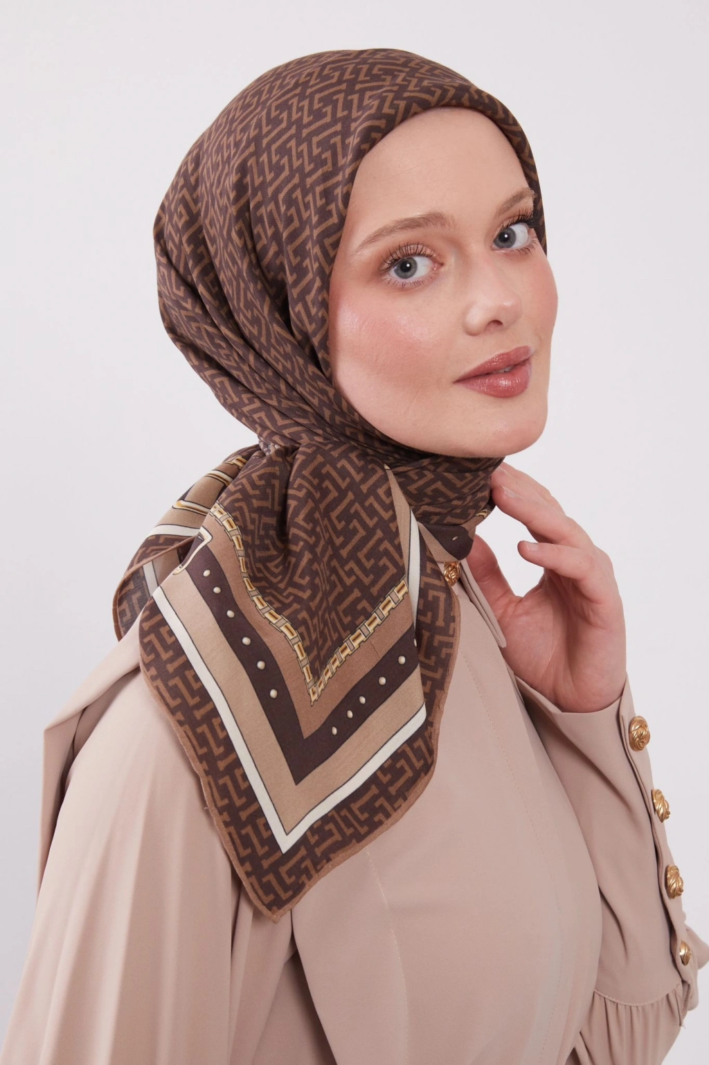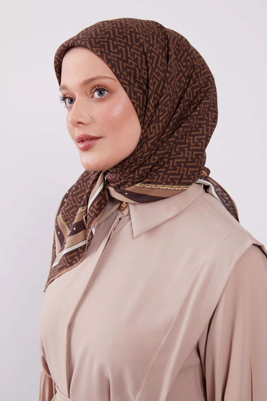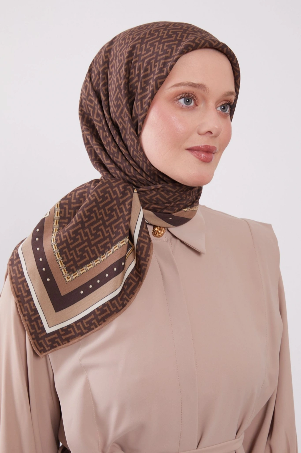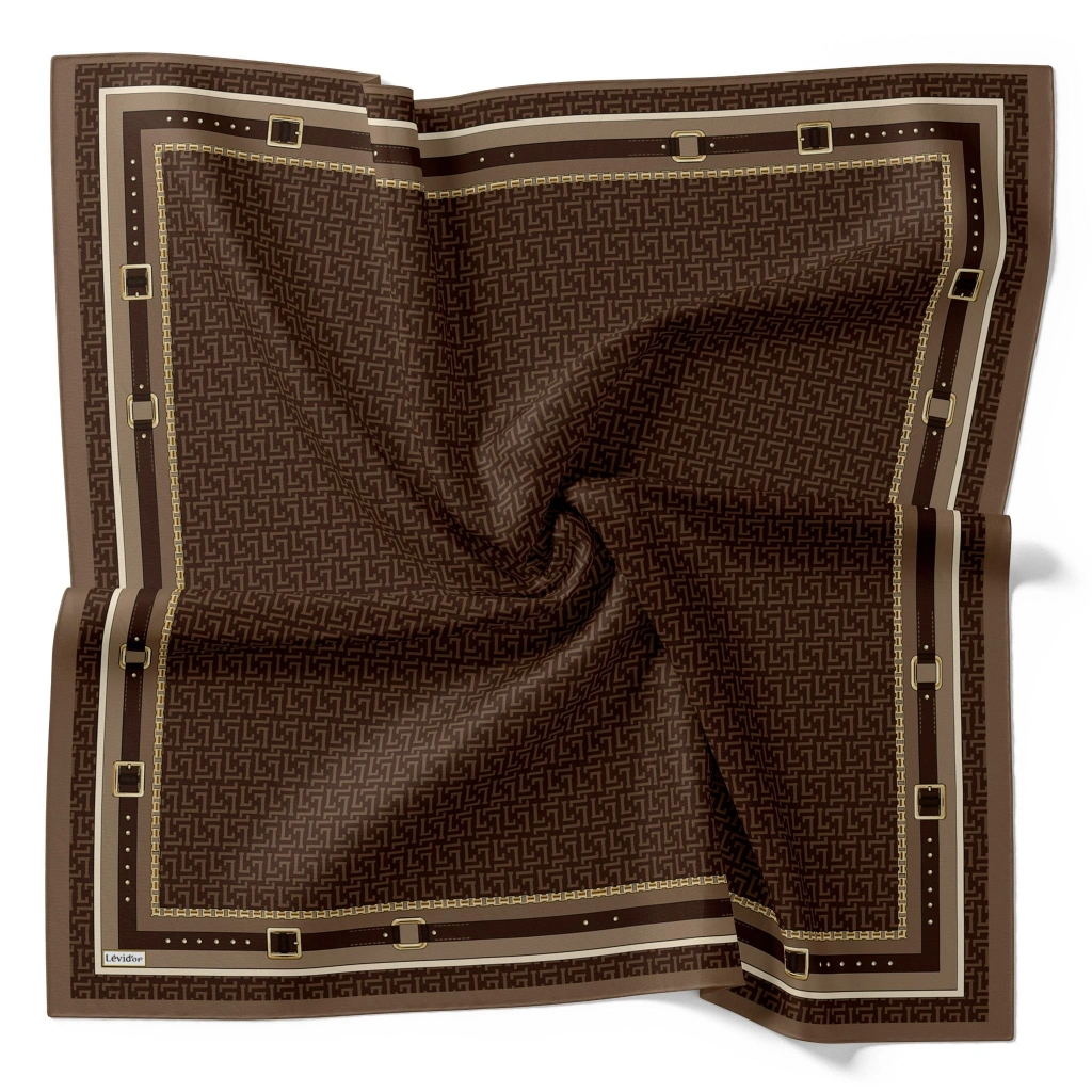 Levidor Royal Eşarp Kemer Desen Kahve, günlük şıklığınıza ve özel günlerinizdeki tarzınıza zarafet katar.