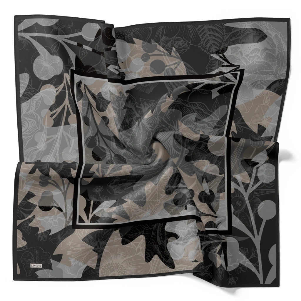 Levidor markasının şıklık ve zarafeti bir araya getiren Royal Eşarp serisi, Yaprak Desen Siyah Gri modeli ile göz kamaştırıyor. Eşarbın ebatı 95x95 cm olup, farklı kullanım seçenekleri sunmaktadır.