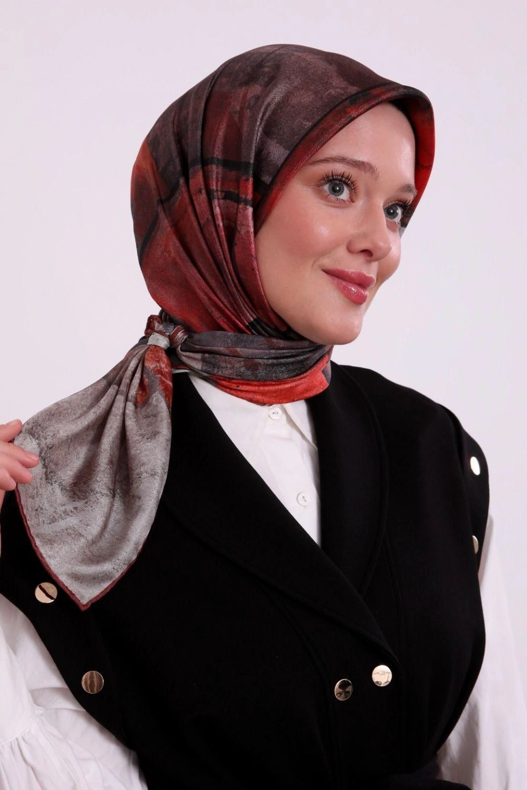 Ebatları 90 * 90 cm olan bu eşarp, farklı bağlama teknikleri ile kullanılarak şık bir görünüm elde etmenizi sağlar.