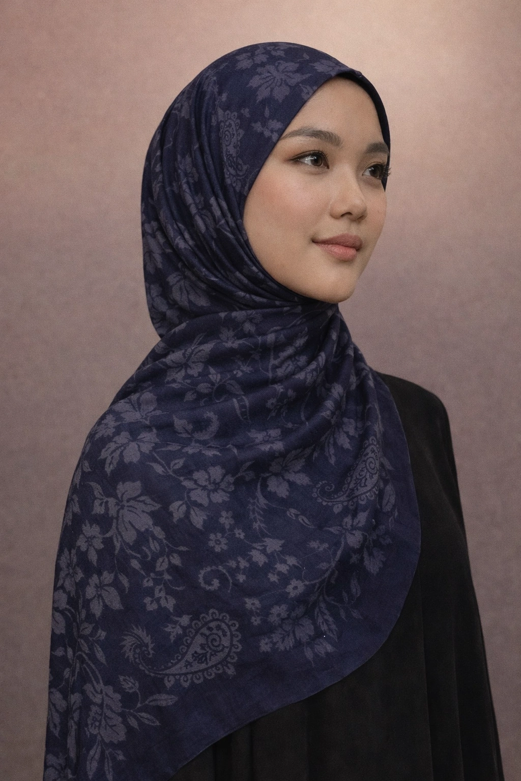 Mavi İpek Lacivert Serisi Soft Pamuk Şal D5