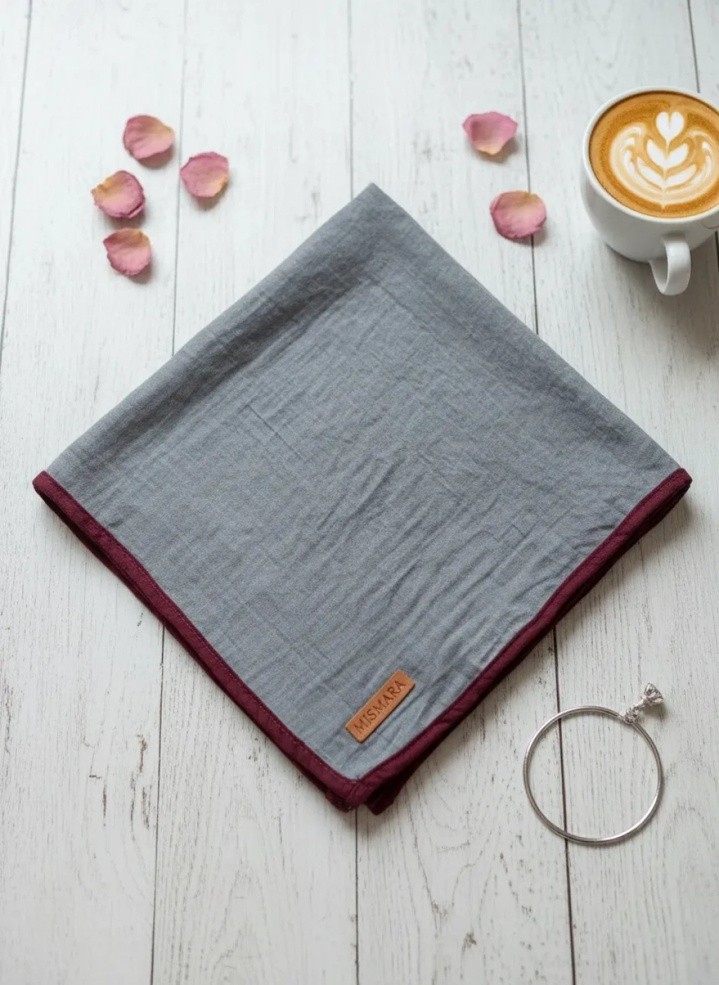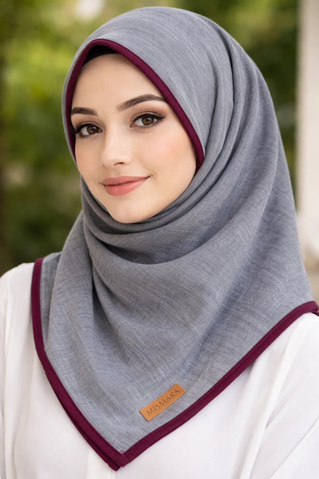 Her an şıklığınızı tamamlayacak Mismara Müslin Biyeli Eşarp Gri Bordo, tarzınıza elegan bir dokunuş katacak.