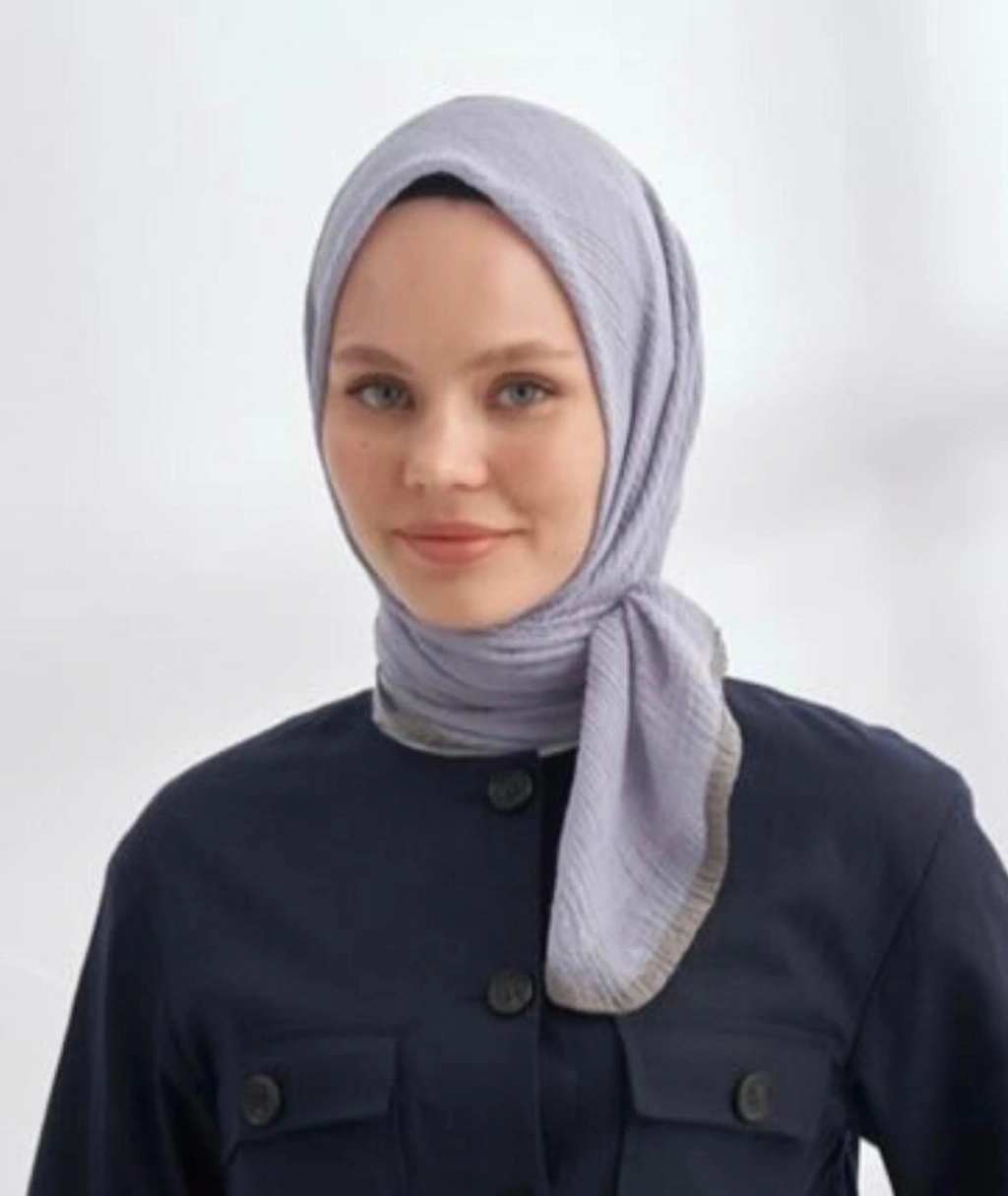 Mismara Müslin Biyeli Eşarp Gümüş