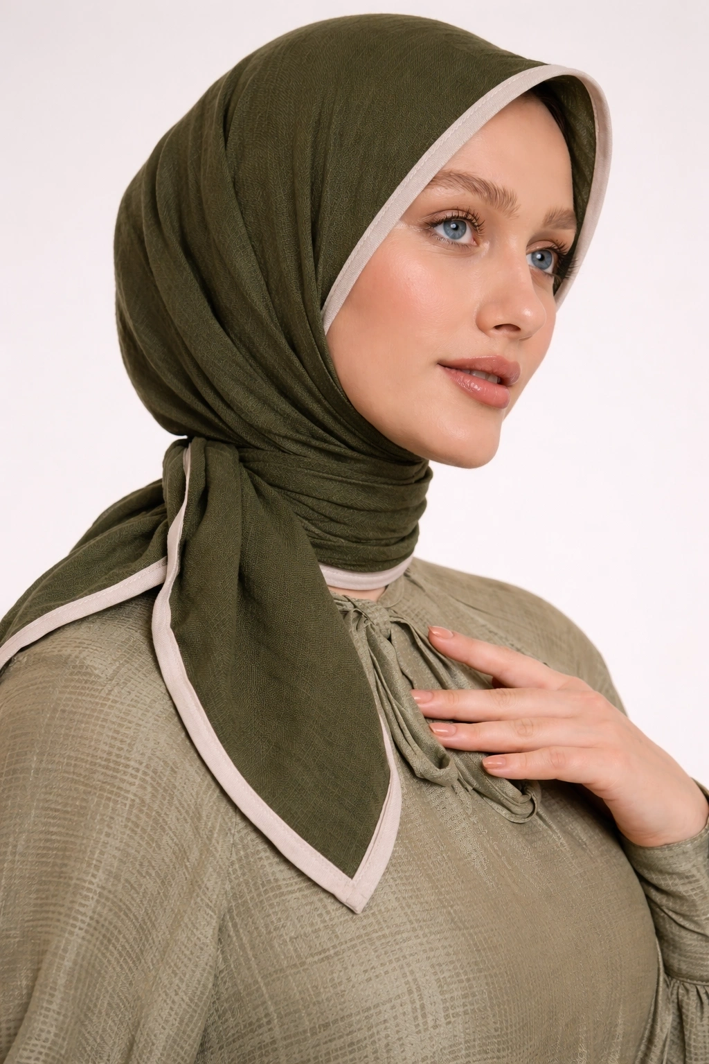 Mismara Müslin Biyeli Eşarp Haki, günlük kullanımdan özel davetlere kadar her ortamda şıklığınızı tamamlar.