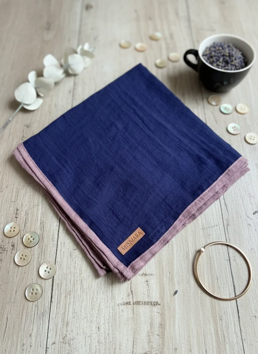 Mismara Müslin Biyeli Eşarp Lacivert Pudra