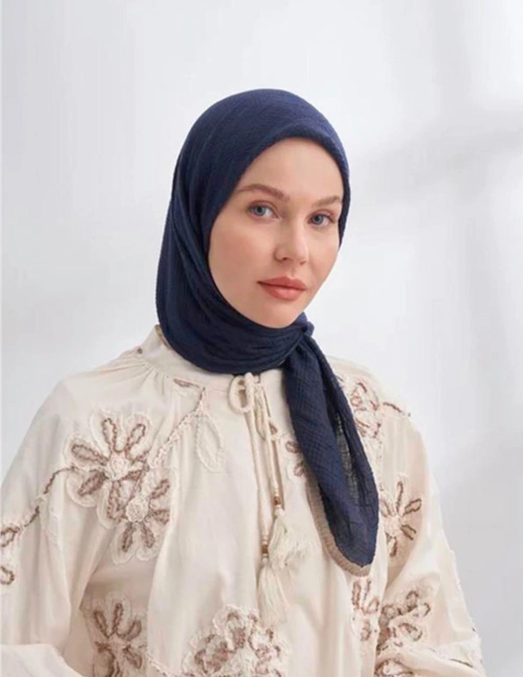 Mismara Müslin Biyeli Eşarp Lacivert Vizon ile tarzınızı tamamlayabilir, her an şıklığı yakalayabilirsiniz.
