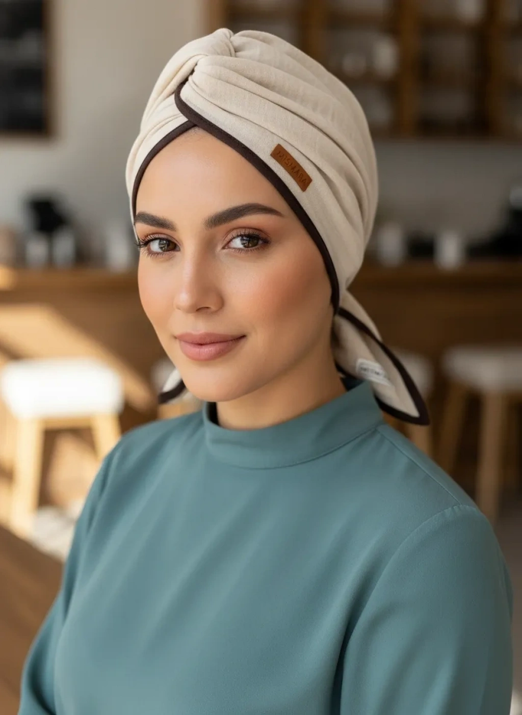 • Biyeli detaylar eşarbı daha şık hale getirir.