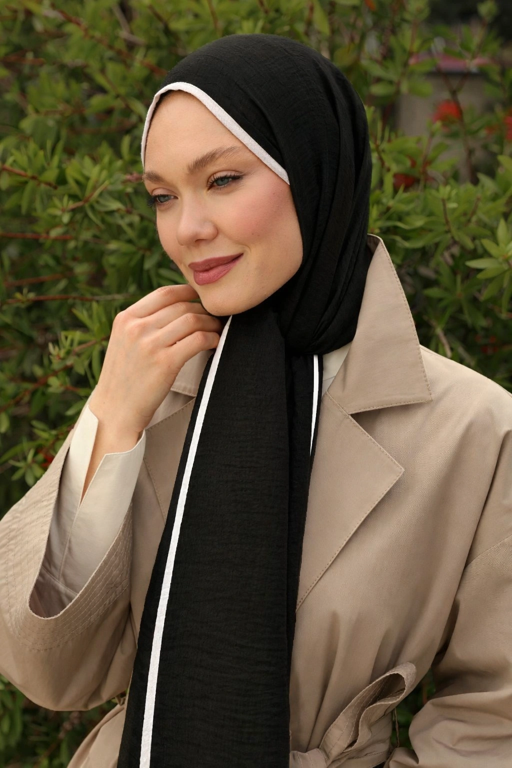 Mismara Müslin Biyeli Şal Siyah, şıklığı ve şıklığı bir arada sunar. %100 doğal pamuklu müslin kumaştan üretilmiştir ve yumuşak dokusuyla kullanımı son derece konforludur. Siyah rengi ile her kombinle mükemmel uyum sağlar. Ebatları 90 * 180 cm olan bu şal, geniş kullanım alanı sunar. Günlük hayatta ve özel günlerde kullanabileceğiniz Mismara Müslin Biyeli Şal Siyah, tarzınıza zarif bir dokunuş katmak için idealdir.