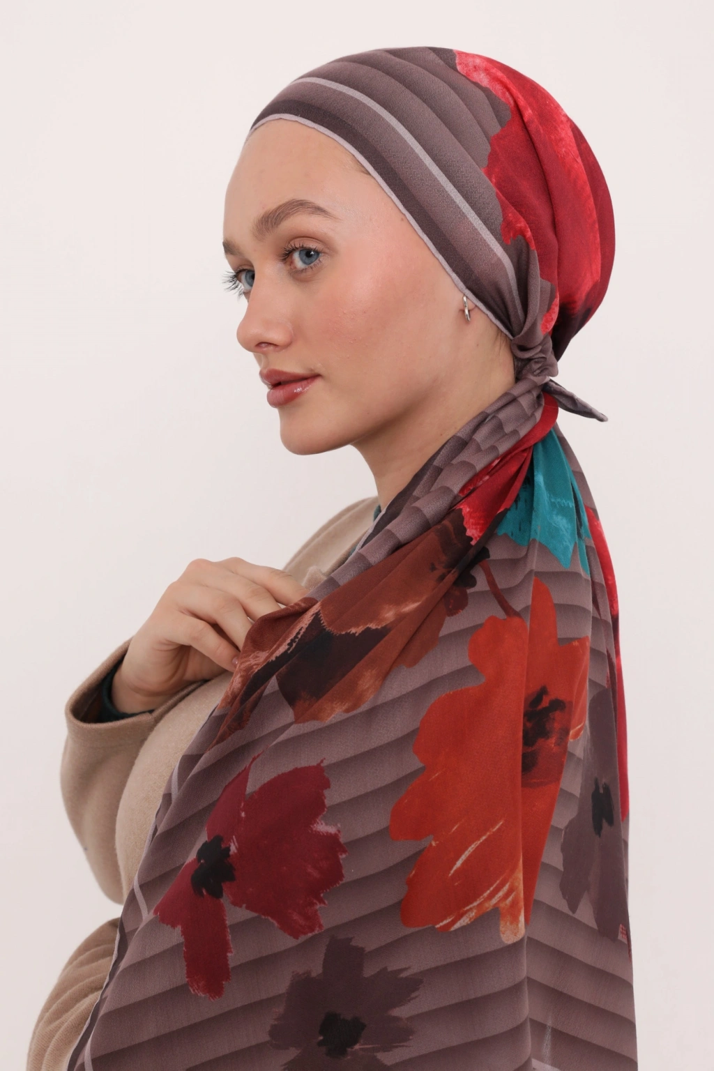 Sağlığa ve çevreye saygılı bir şekilde üretilen bu eşarp, zarif pudra rengi ve şık vizon deseniyle dikkat çekicidir.