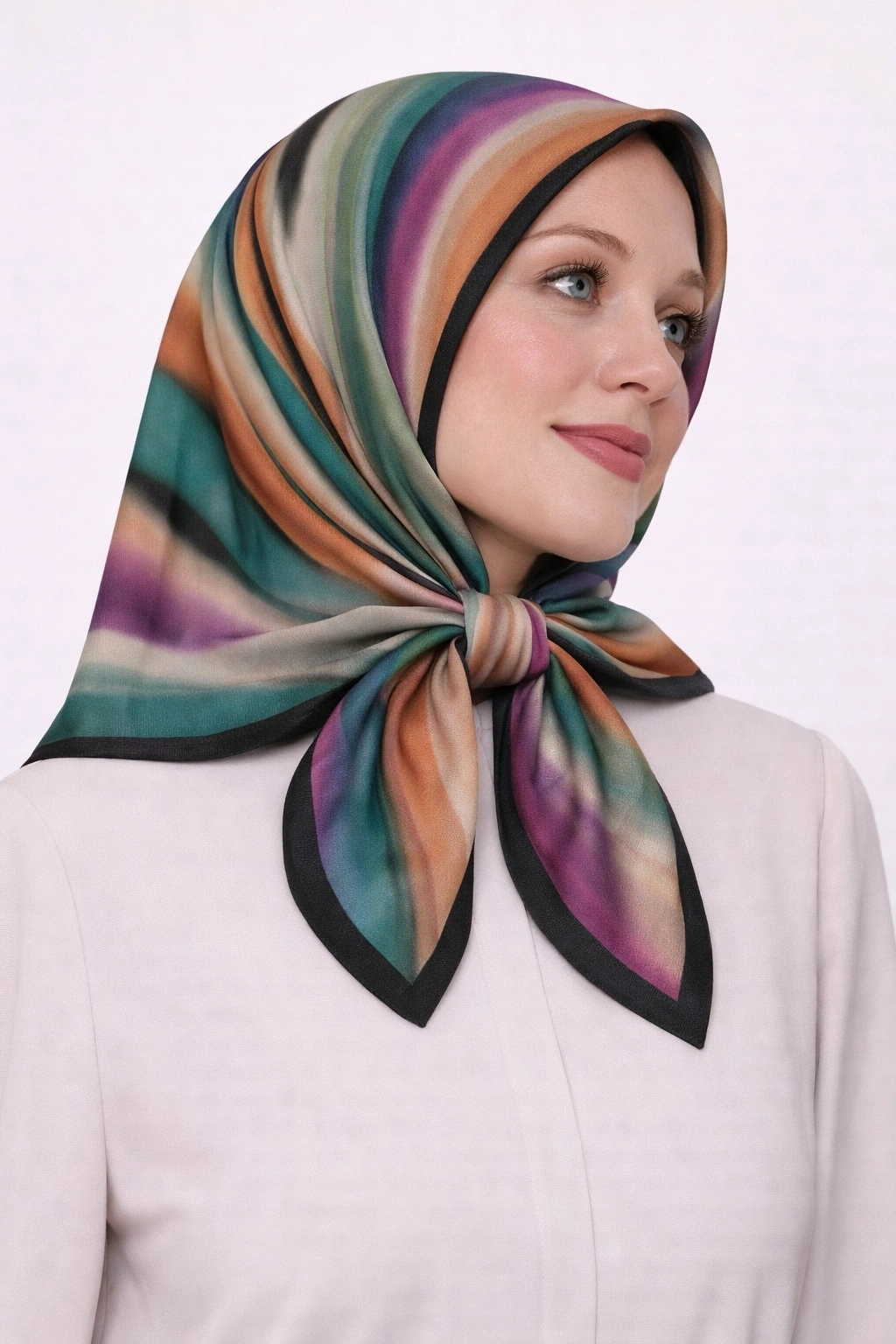Mavi İpek Pamuklu Soft Eşarp günlük kullanımdan özel günlerdeki şık kombinlere kadar geniş bir kullanım alanı sunar.