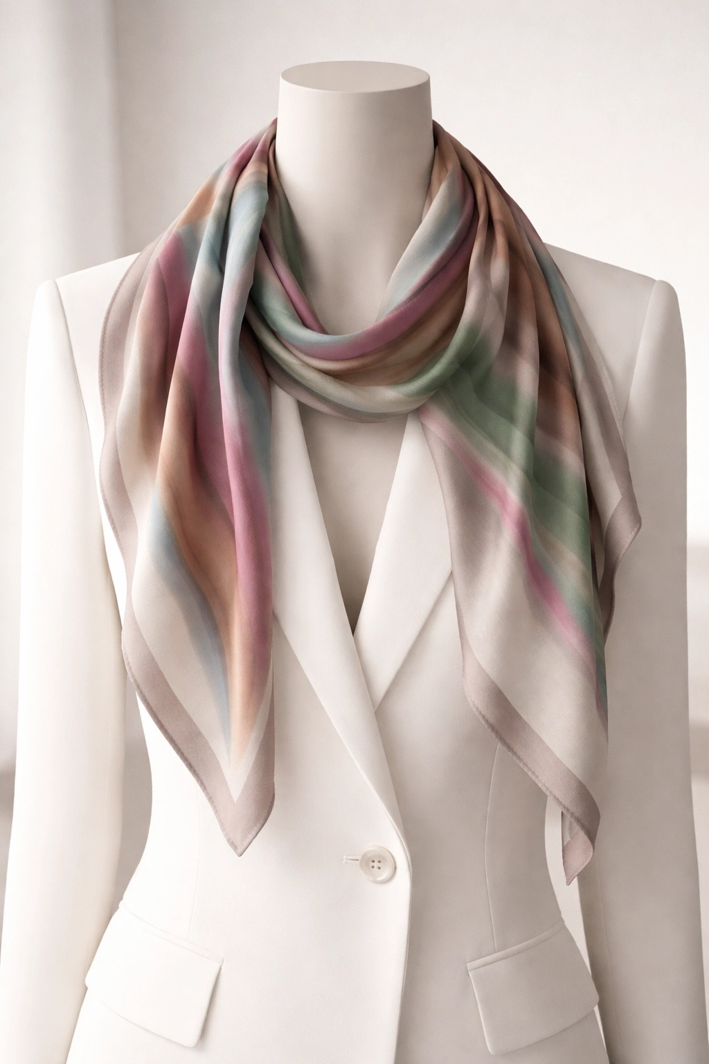 • İpek ve pamuklu kumaşın harmanlanmasıyla üretilmiş olan eşarp, cildinize yumuşak bir dokunuş sağlar.